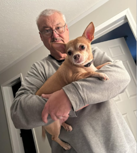 Dennis and a calmer Luna.